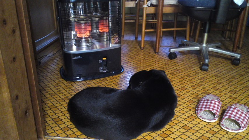 その後、身体を乾かす為にストーブ前で『ごろ~ん』とうたた寝