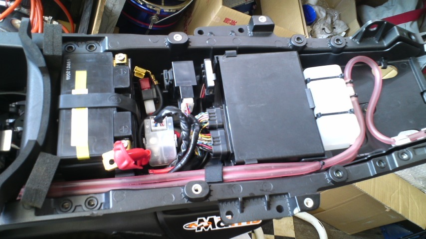 前日に装着したNew??シートレールにECU・バッテリー・キャッチタンク等を