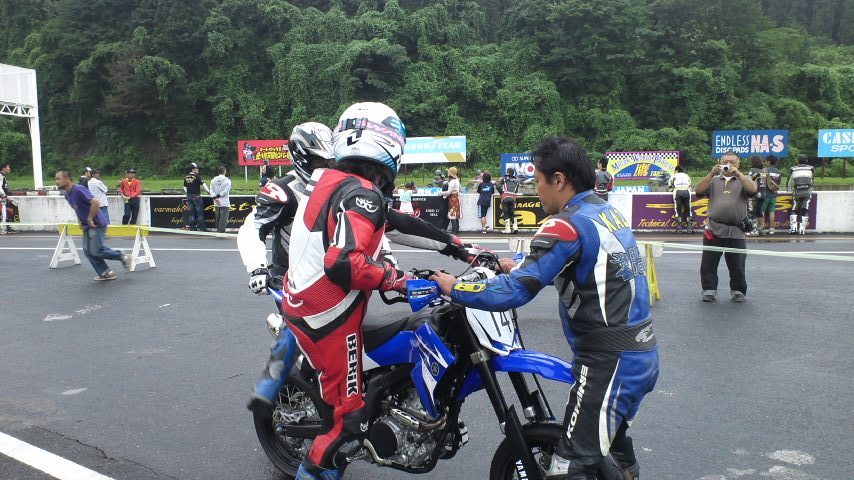 第1ライダーの松名選手から第2ライダーのWR250Xオーナー染谷選手へ・・・
