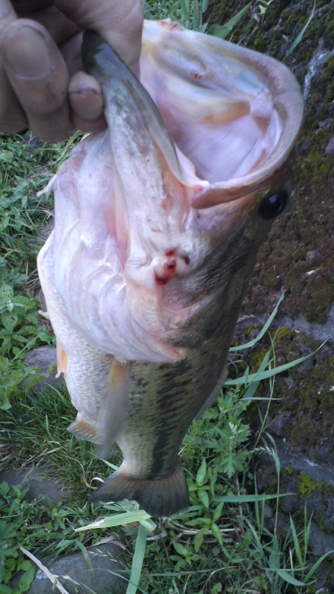 昨日、旧川にて夕まずめに釣り上げた痩せランカーバスです