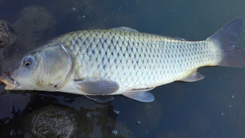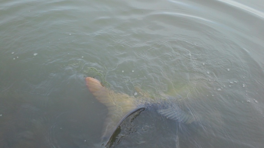 しょうがないので一度、鯉君を川に戻し勢いをつけて