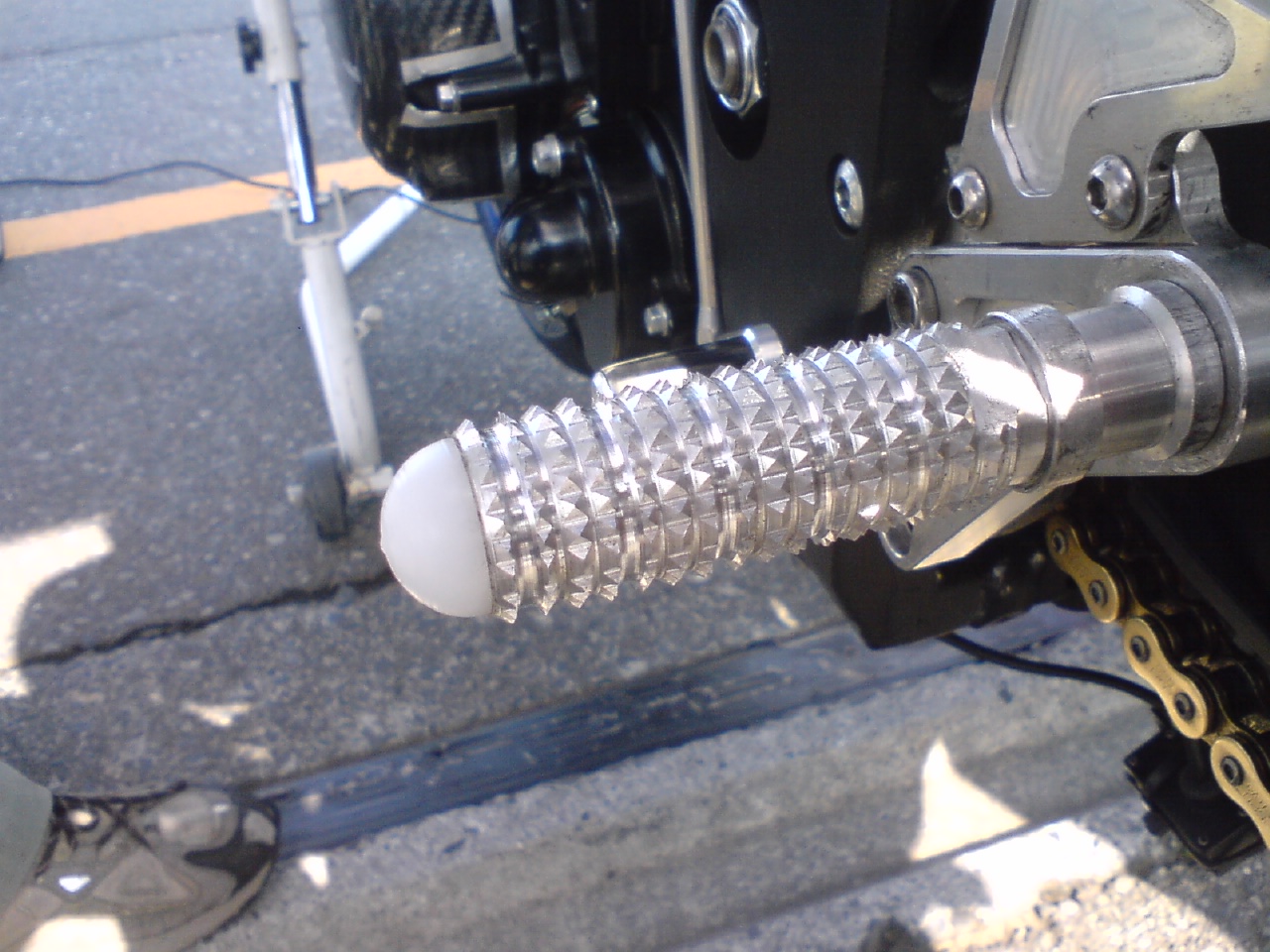 サイレンサー付近にあったジャッキスタンドが・・・ヨシムラ カーボンサイレンサーに『刺さってる・・・