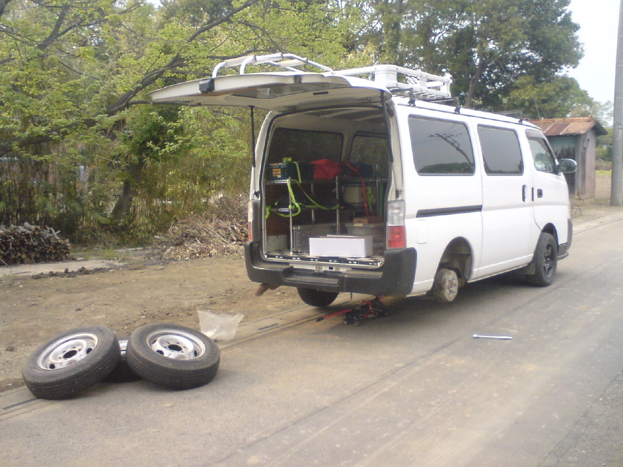 ノーマルホイールにチェンジして車検の準備をしていました