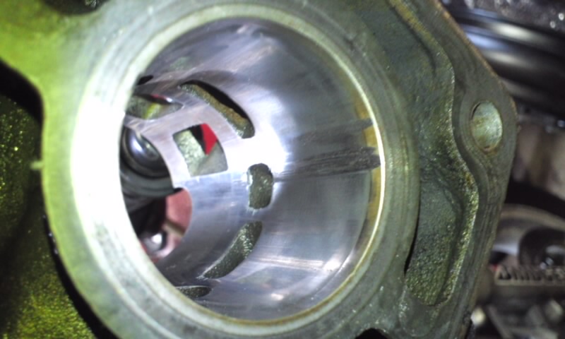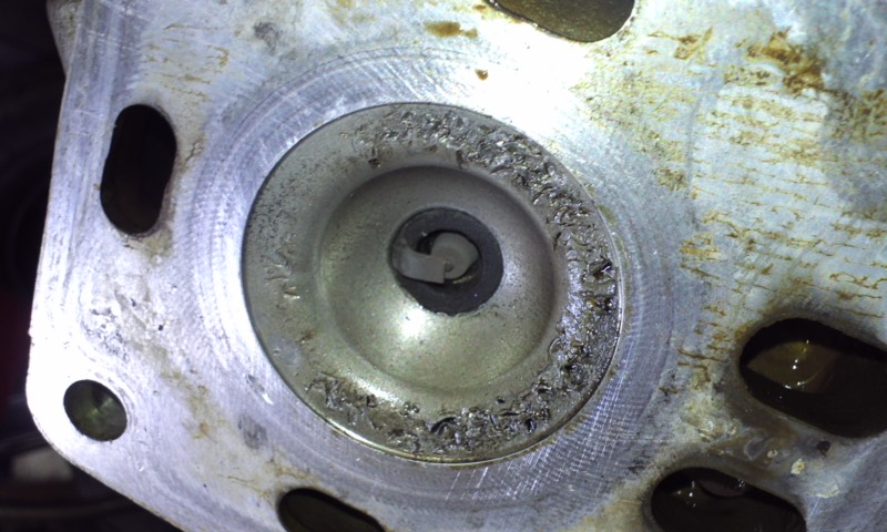 シリンダーヘッドはピストンの破片が打ち込まれ傷だらけ・・・